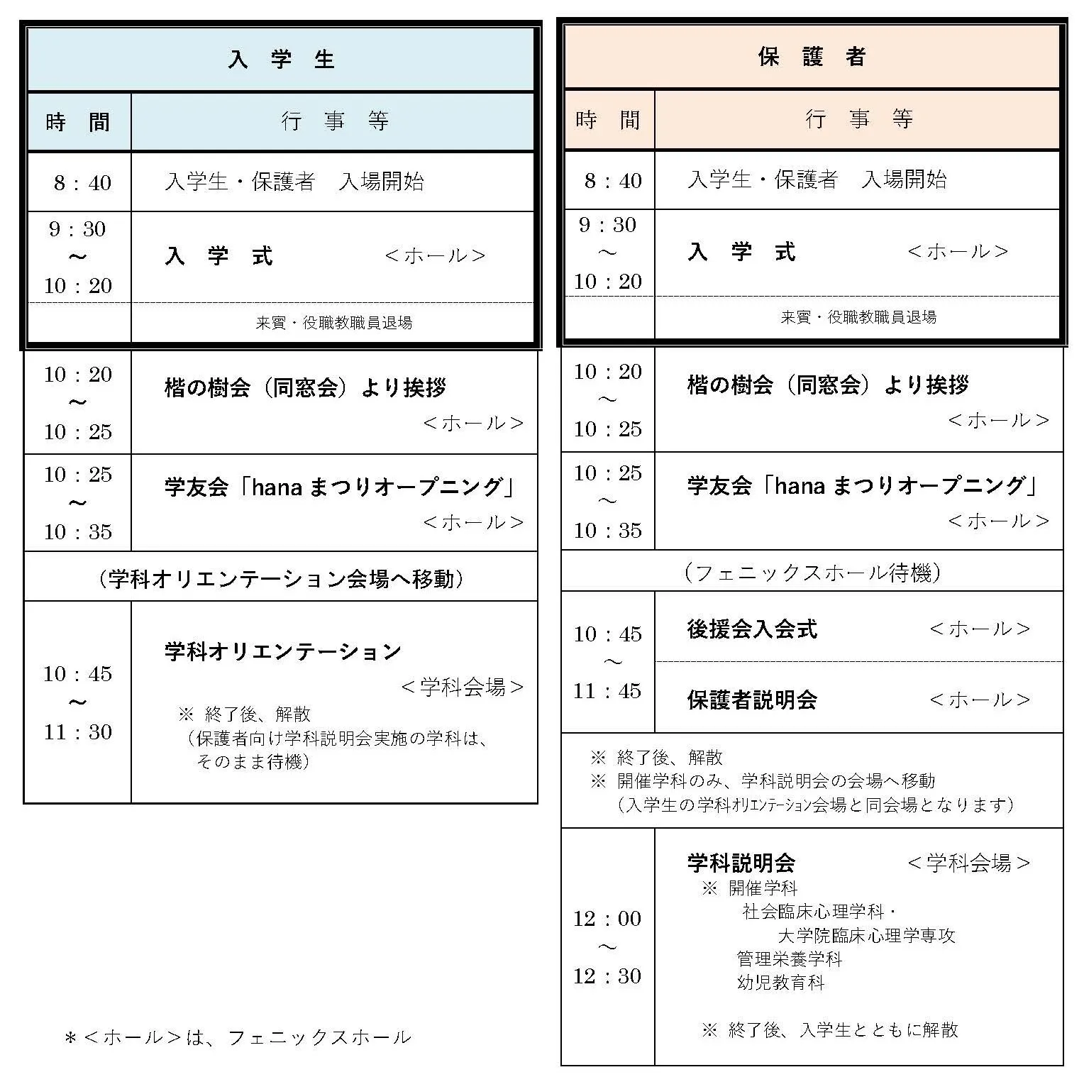 令和7年度入学式及び学科別のオリエンテーション等につきましては、以下の日程で実施します。開催日時 : 令和7年4月2日(水)8時40分 開場9時30分 開式※入学生・保護者の皆様は、9時20分までにご着席ください。開催場所 : 広島国際会議場広島市中区中島町1番5号(平和記念公園内)*会場には駐車場がございませんので公共交通機関をご利用ください。