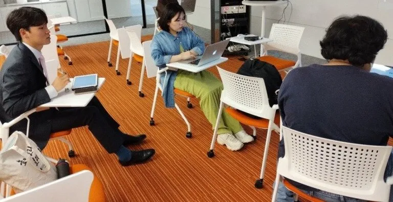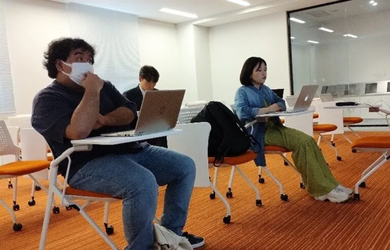 授業後、翻訳グループのメンバー、久保田未來さん、趙在温さん、タジマ マルシオ ジョゼ テツオさん (いずれも言語文化学科3年)にインタビューをしました。