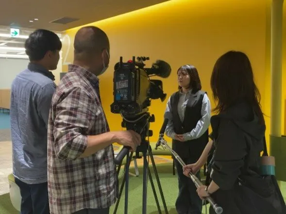 その際に中国放送の取材を受け、学生が意気込みを応えました。