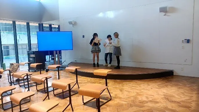 終了後に司会担当の3人に話を聞いたところ「当日は噛まない、サ行が苦手なので丁寧に言うようにする」などを目標にするということでした。