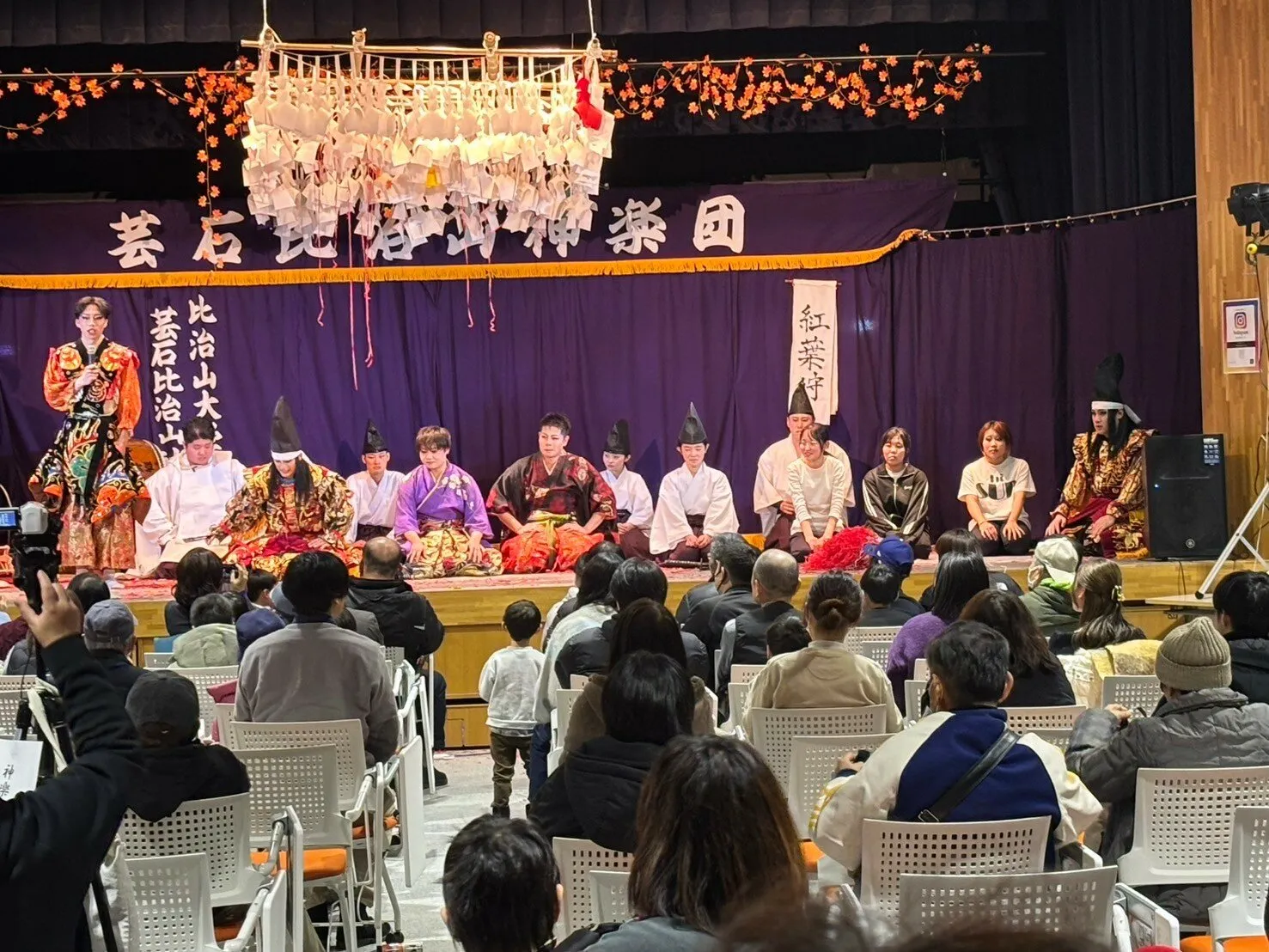 今回4演目上演し、神楽で定番の「八岐大蛇」に始まり、今回新たに挑戦した「紅葉狩」まで各演目こだわりをもって全員で取り組みました。少しでもお客様に比治山の神楽を楽しんでいただけていれば幸いです。