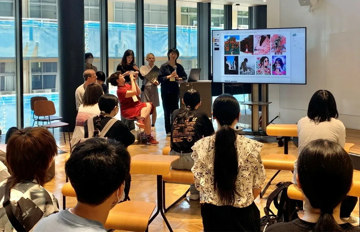 また、今回の学生たちの活動は翻訳だけにはとどまらなかったことも特徴的です。HASでは国外から毎回短期的に3人のアーティストを招へい(ひろしまアーティスト・イン・レジデンス)しています。それらアーティストたちは、様々な場所で自分たちの作品の紹介、ワークショップを行います。英語でのコミュニケーションが通常ですが、今回は韓国からのアーティストを招へいしており、韓国語が得意な比治山大学の学生がイベントで通訳を行うという場面もありました。学内でのH-AIRお披露目会では、メディアによる取材で韓国語の通訳の力を発揮する場面もありました。横川シネマでのH-AIRお披露目上映会「HELLO!HIROSHIMA」でも、学生たちが通訳を行い、日ごろの学習成果を活かすことができました。