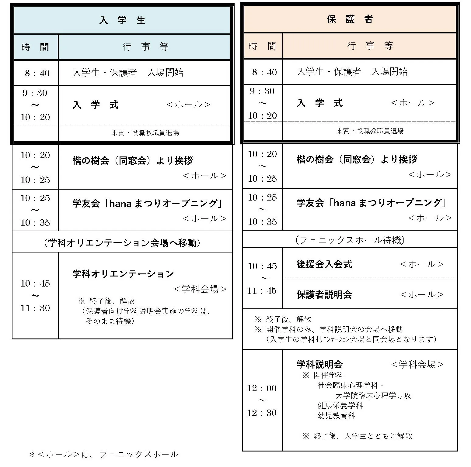 令和8年度入学式及び学科別のオリエンテーション等につきましては、以下の日程で実施します。開催日時 : 令和8年4月2日(木)8時40分 開場9時30分 開式※入学生・保護者の皆様は、9時20分までにご着席ください。開催場所 : 広島国際会議場広島市中区中島町1番5号(平和記念公園内)*会場には駐車場がございませんので公共交通機関をご利用ください。