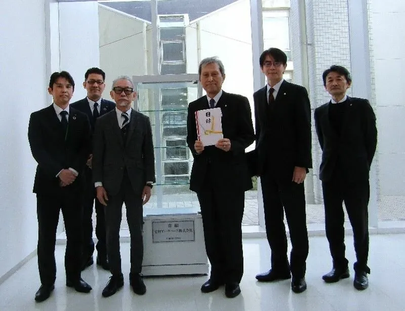 本学の宮谷学長からは、寄贈いただいたガラスショーケースを、学生の活躍の記録や全国に誇れる研究資料などを学内外の皆様に見てもらう場として活用し、学生の自信や成長の糧にしてもらいたいと述べ、感謝の意が伝えられました。