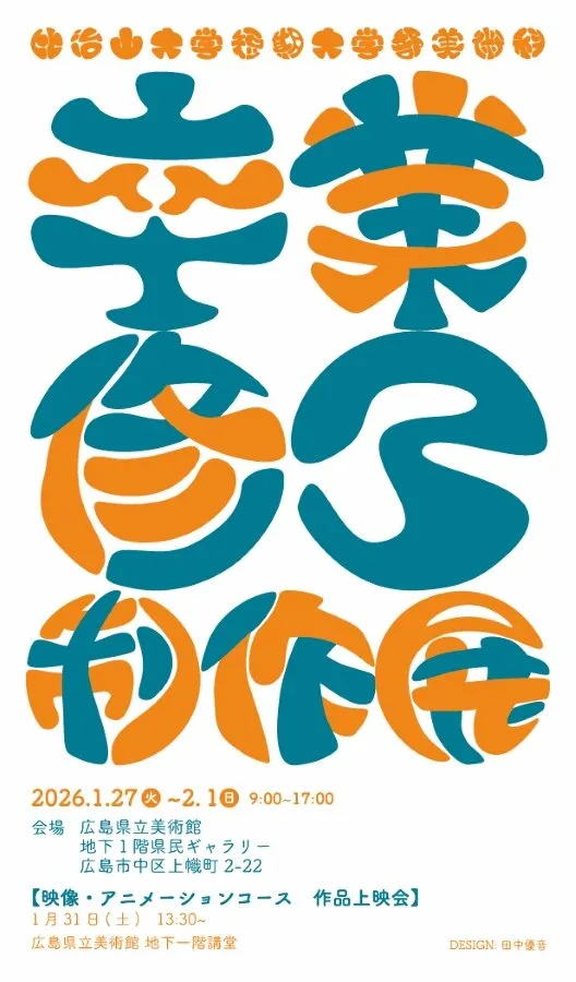 1月31日(土)13時30分~14時30分広島県立美術館地下1階講堂で「映像・アニメーションコース 作品上映会」を行います。