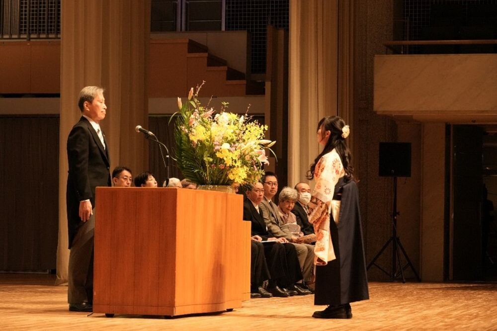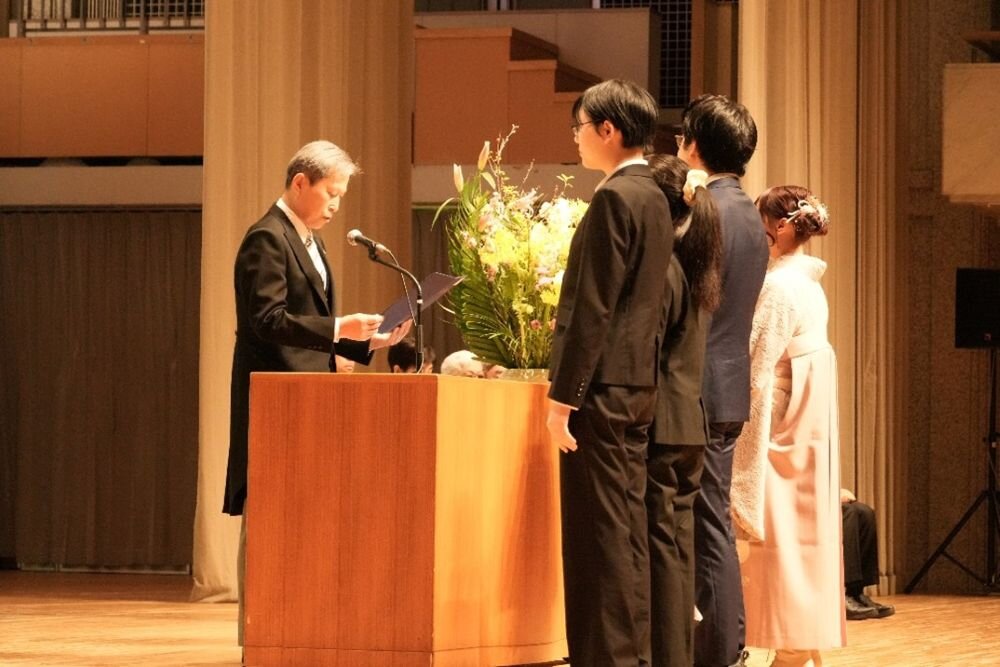 また,式の中で,「学業において特に優秀な成績を修めた学生」,「課外活動等において特に顕著な業績を挙げた学生」として,2名の代表者へ表彰状が贈られました。